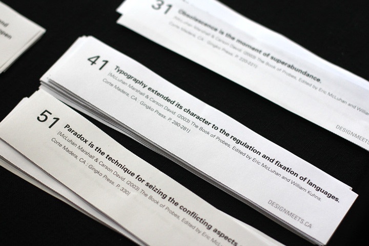 Many thanks go to our co-hosts at McLuhan100. It was such an honour to be a part of this inspirational crowd and you can be assured that the Monday night seminar and probe format will definitely have a positive influence on our future DesignMeets events. Check out more throwback photos of this event.